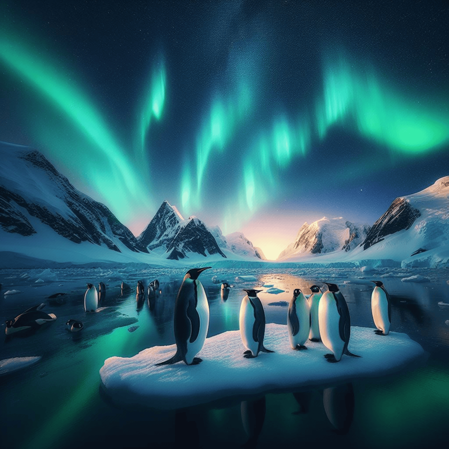 Antarctic Nightscape: Witness the Aurora & Penguins