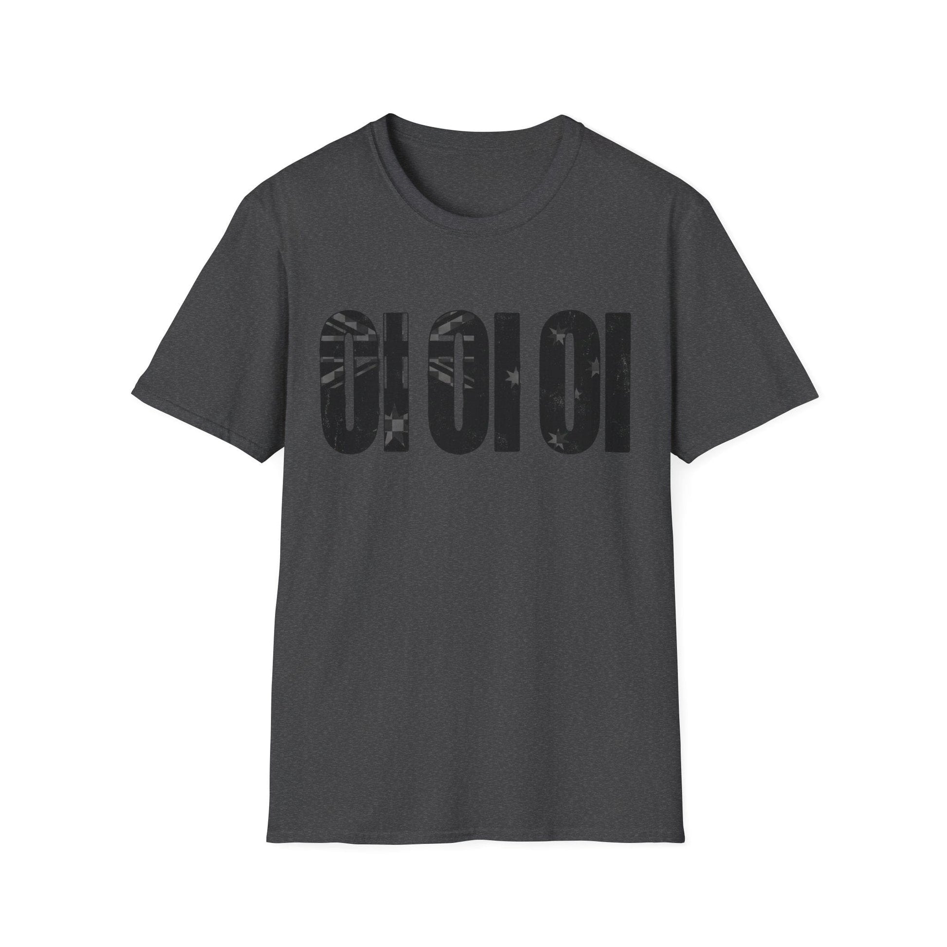 Whether you're at the MCG, a backyard BBQ, or just showing off your roots abroad, nothing says "Australia" like the iconic Oi Oi Oi chant. This t-shirt features a bold, block-letter "OI OI OI" graphic, uniquely textured with a distressed Australian flag print for that vintage, lived-in feel.