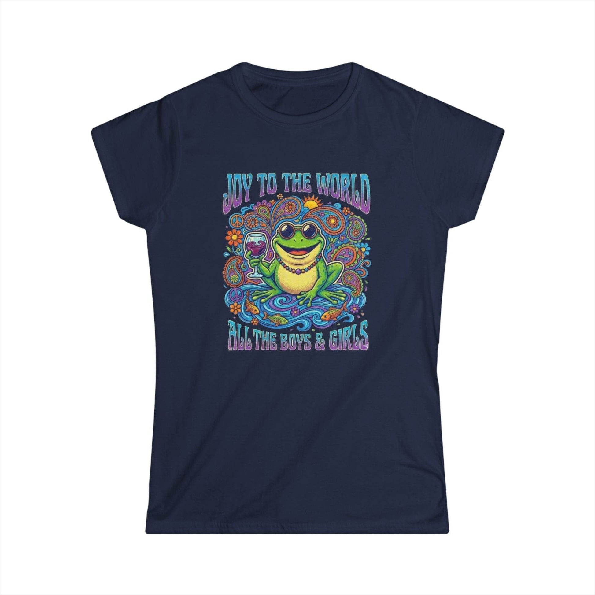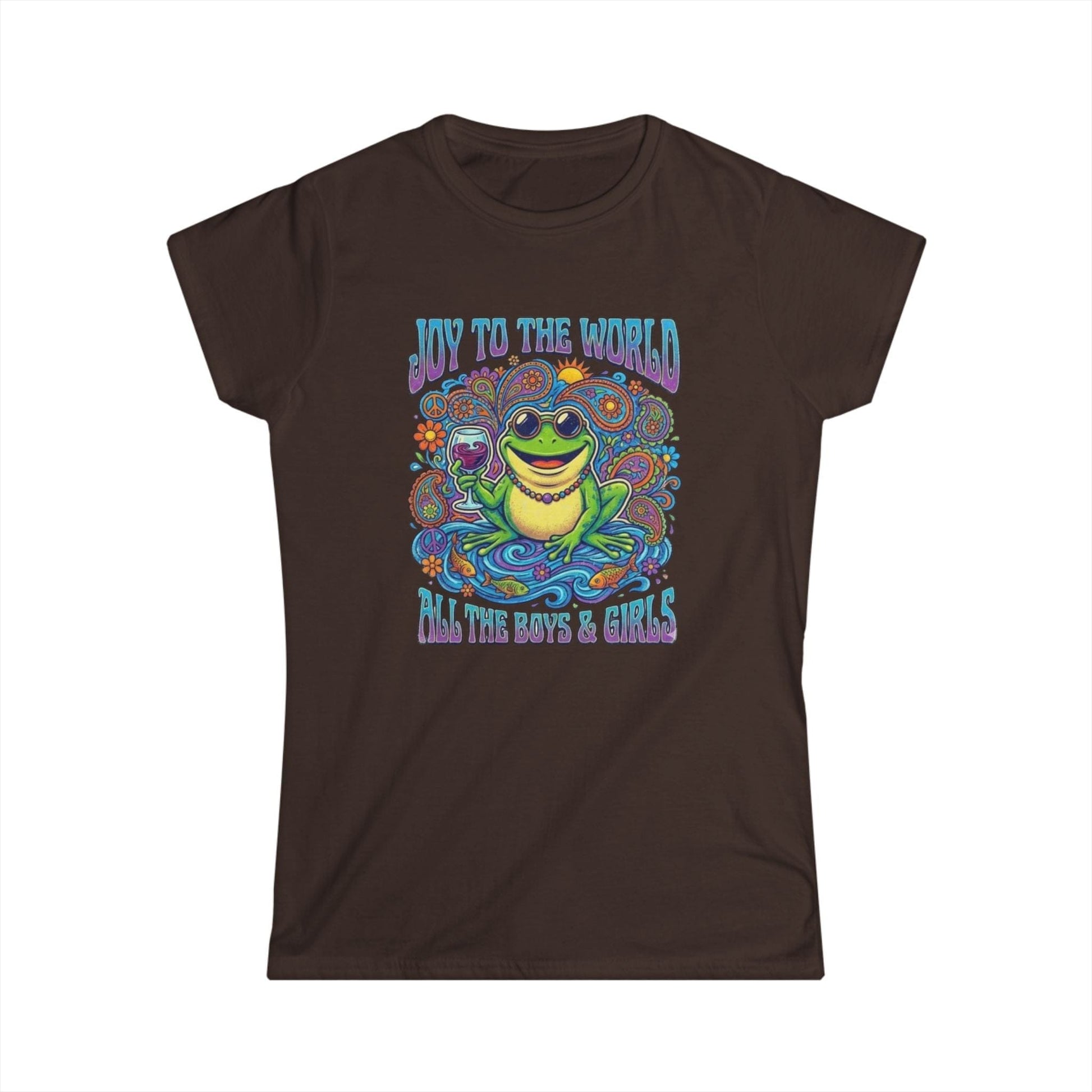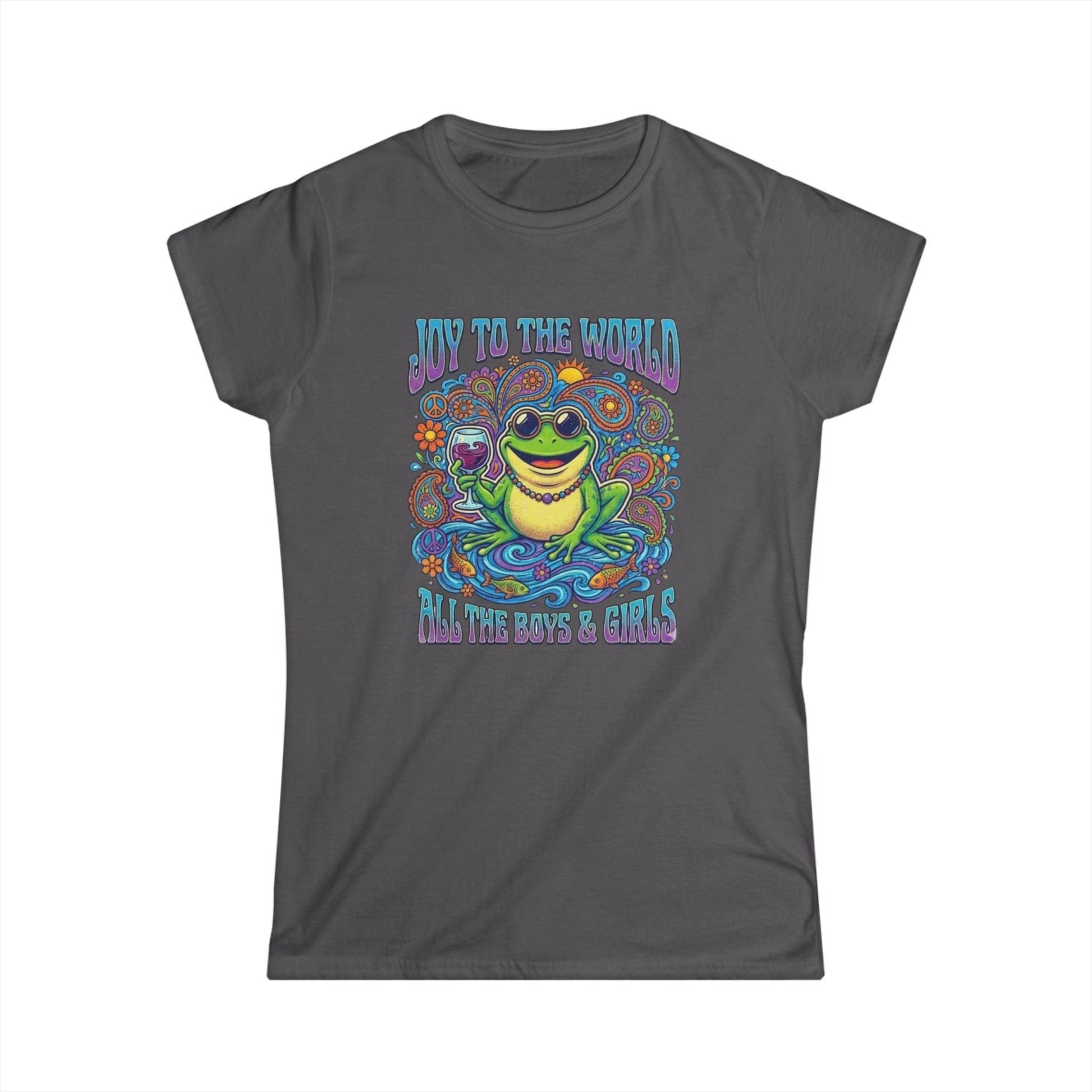 Joy to the World Frog Graphic Tee – Psychedelic Retro Women’s T-Shirt
