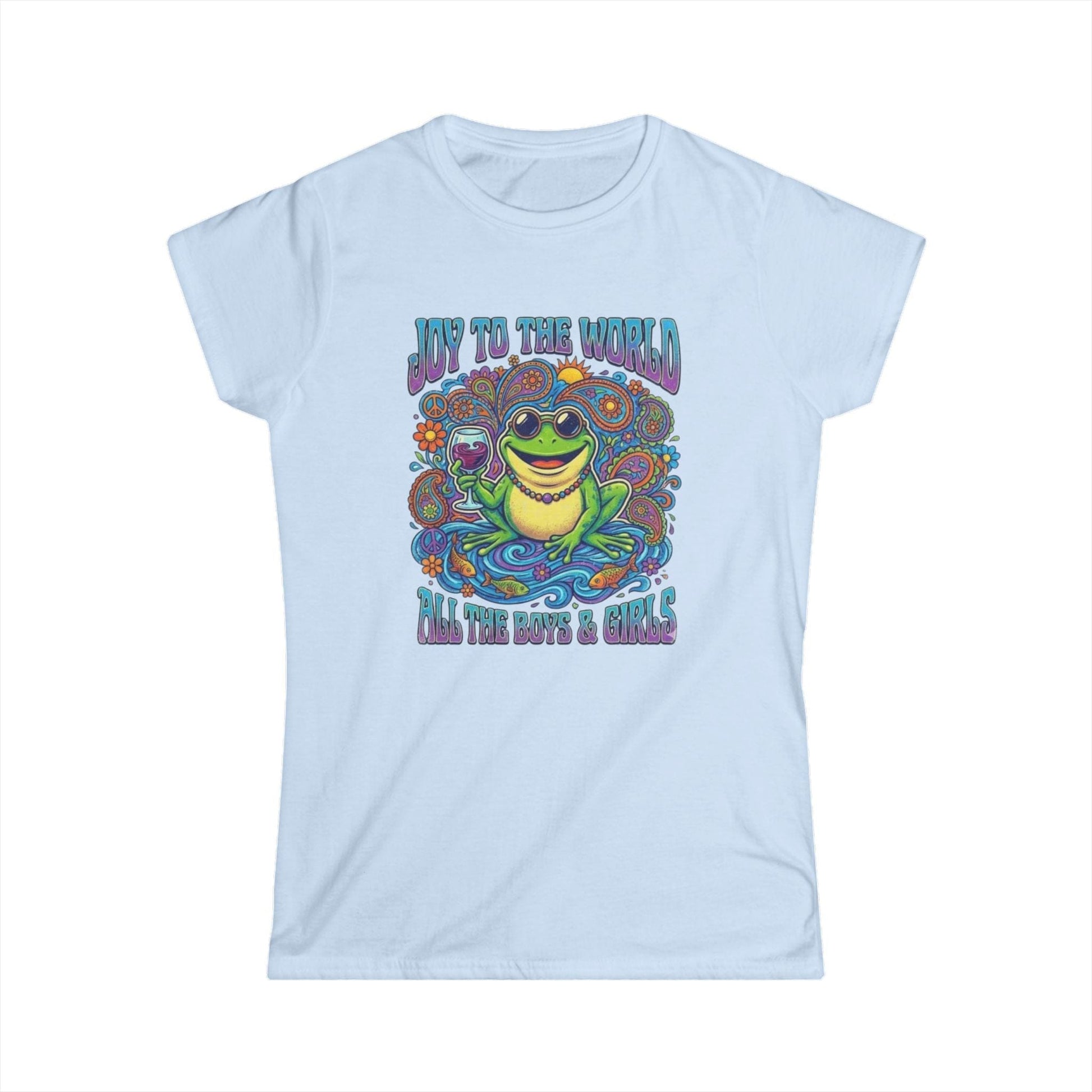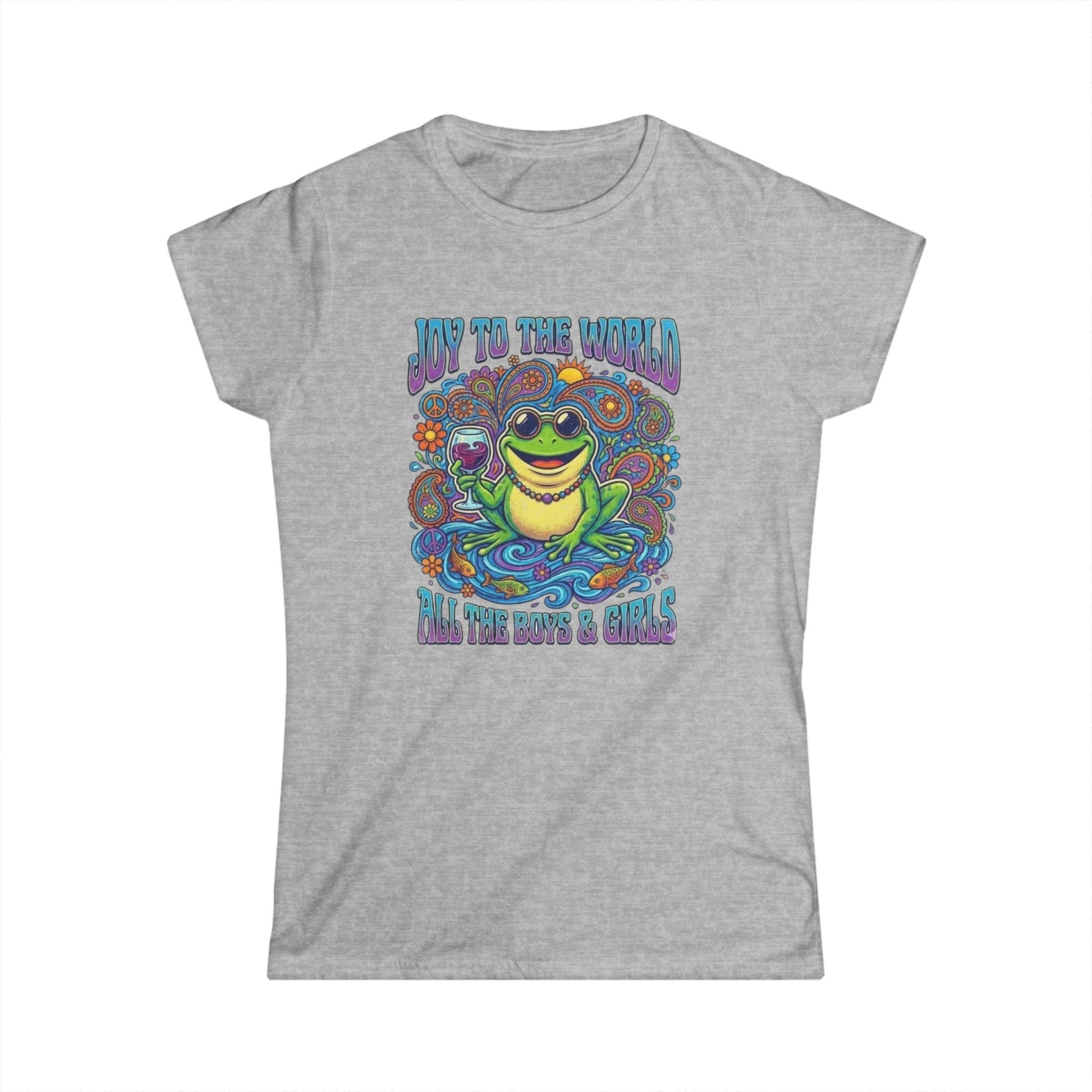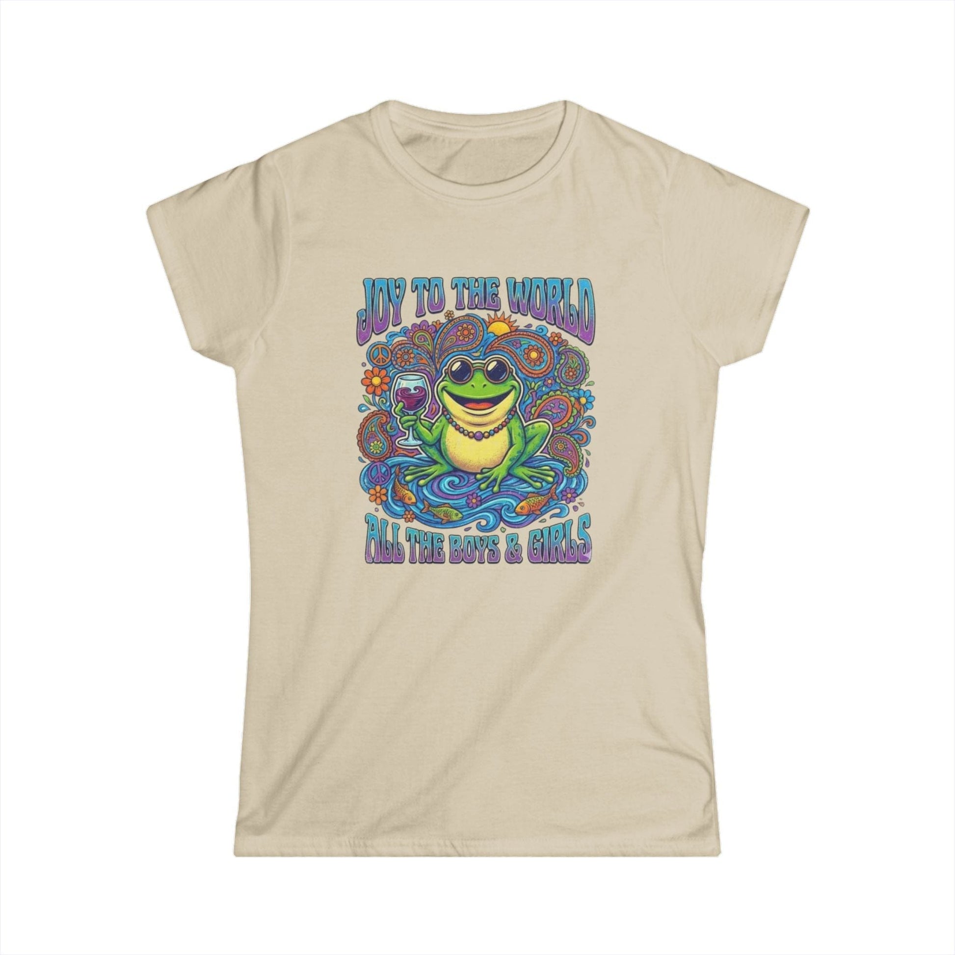Joy to the World Frog Graphic Tee – Psychedelic Retro Women’s T-Shirt